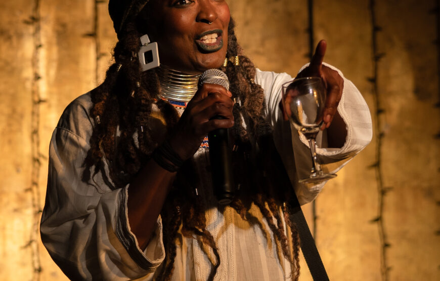Avec cette gouaille typique, cette énergie folle, elle est depuis 2022 la maîtresse de soirée de la Velu.e (qu’elle a co-fondée).
