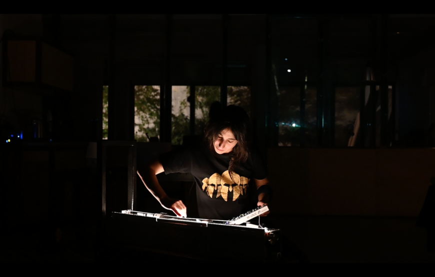 Kinda Hassan is a composer and artist based in Paris whose practice spans sound, video, craftsmanship, and software programming. Her works have been presented at numerous festivals, museums, and art spaces, including the Résonance Festival in Marseille (MuCEM), Propagations (GMEM), Le Mans Sonore (Biennale du Mans), Cannes, the Berlinale, Oberhausen, Jihlava, Transmediale, La Maréchalerie, MUMOK in Vienna, Casa Árabe in Madrid, as well as other art spaces, festivals, and platforms across Europe, North America, and the Middle East. Hassan received an MFA from the Lebanese Academy of Fine Arts (ALBA) in 2007 and a Master’s degree in Sound Design from ESAD–TALM Le Mans in 2018. Since October 2024, she has been undertaking an artistic doctoral research project focused on the construction of automated instruments as an electroacoustic compositional practice. She has collaborated extensively as a sound designer and composer on numerous video, film, and performance projects.