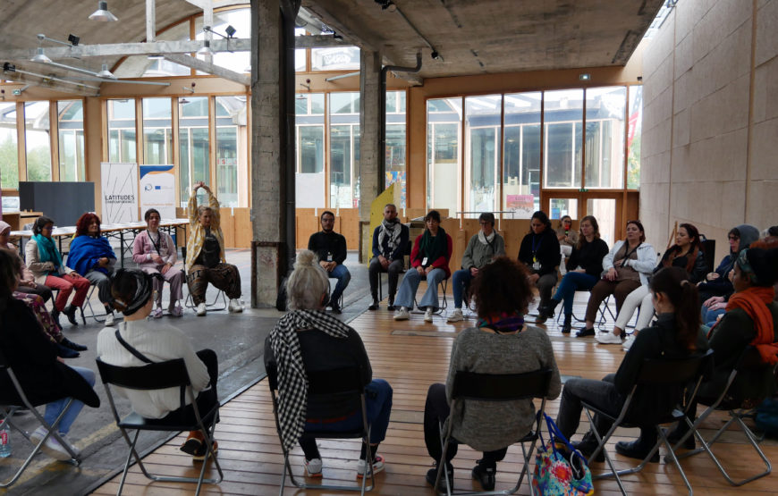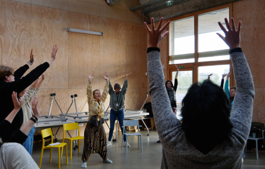 Les ateliers se sont tenus sur trois jours, autour de la thématique Lier, Délier, Relier. Ils tisseront ensemble trois pratiques, liées à l’ancrage du corps (Clarity), à l’expression artistique et créative (Creativity) et à la dramathérapie (Action). Ces trois axes ont été animés par trois artistes-expert·es invité·es par Latitudes Contemporaines, qui ont croisé leurs pratiques avec les équipes internationales du projet.