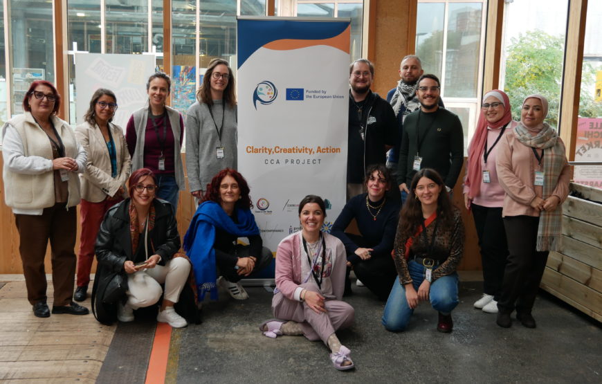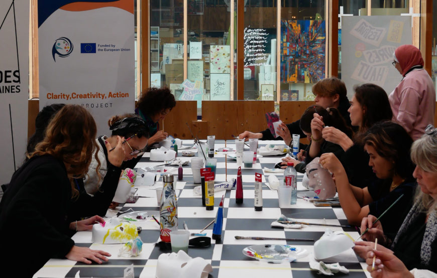 Clarity Creativity Action (CCA) est un projet européen qui s’est déroulé entre novembre 2023 et octobre 2025. Le projet, mené avec le soutien de l’Union Européenne dans le cadre du programme Erasmus+, est né de la rencontre entre 6 acteurs professionnels de la culture et/ou humanitaires, dans une volonté de co-créer une méthodologie d’art thérapie notamment destinée à accompagner les personnes en situation d’exil : la méthode Clarity, Creativity, Action.