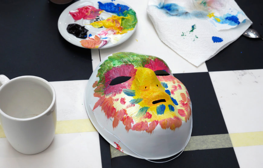 Le 22 octobre, Reem et Salah ont proposé aux participant·es un atelier d’expression créative et artistique pour explorer le lien entre leur monde intérieur et leur monde extérieur à travers l’acte symbolique de peindre sur des masques.